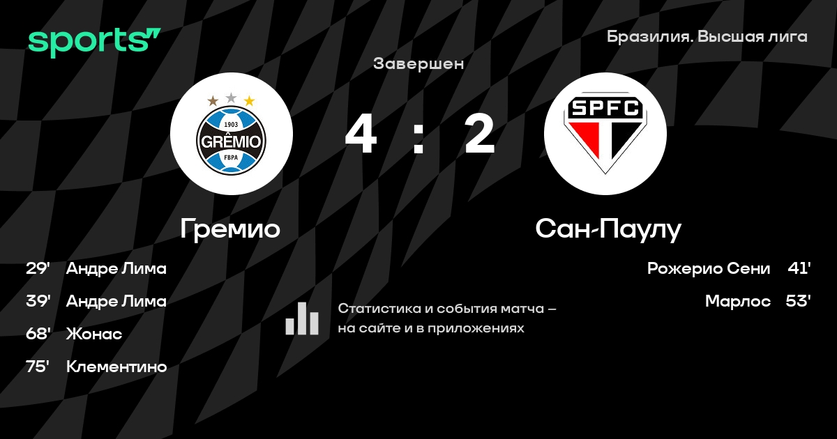 Чемпионат Бразилии. 32-й тур. «Интернасьонал» уступил «Сан-Паулу», «Фламенго» проиграл «Баруери»