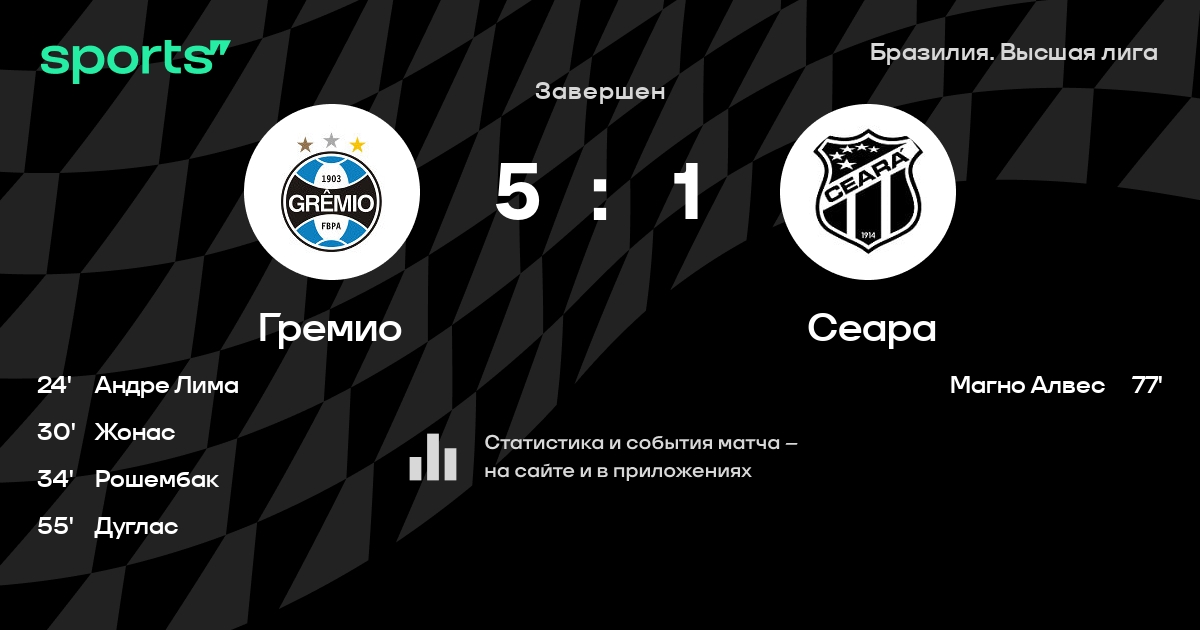 | 4 | Гремио | 38 | 17 | 12 | 9 | 68 | 43 | +25 | 63 | ||
