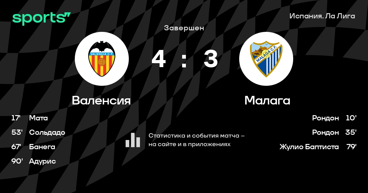 Гуаита - Мигел, Альба, Матье, Станкявичюс, Деальберт - Мата, Мадуро, Эрнандес, Тино Коста - АдурисЗапасные: Фигероа, Хоакин, Фегули, Банега, Сольдадо