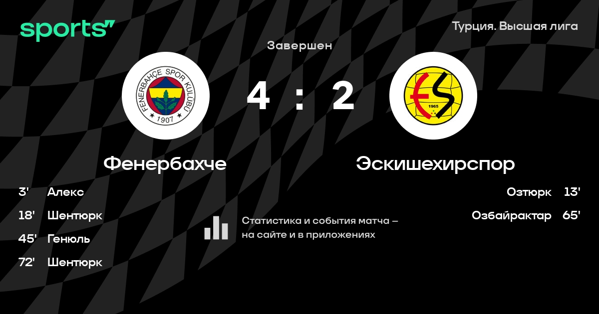 Демирел - Эркин, Йобо, Лугано, Генюль - Стох, Алекс, Топуз, Барони, Белезоглу - ШентюркЗапасные: Гюнок, Билика, Андре Сантос, Казим-Ричардс, Диа