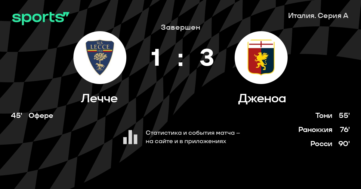 | 10 | Дженоа | 38 | 14 | 9 | 15 | 45 | 47 | -2 | 51 | ||