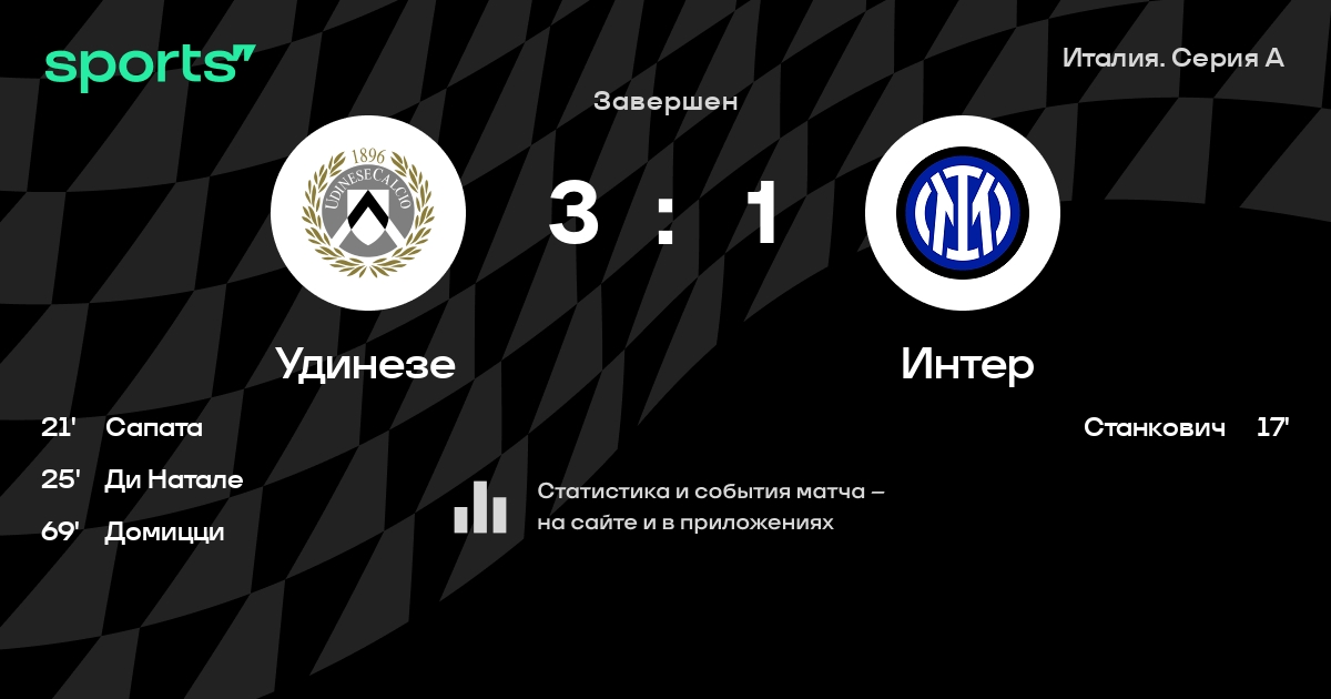 Ханданович - Сапата, Исла, Армеро, Бенатия, Асамоа, Домицци - Пинци, Инлер - Санчес, Ди НаталеЗапасные: Беларди, Кода, Паскуале, Абди, Агеманг-Баду, Денис