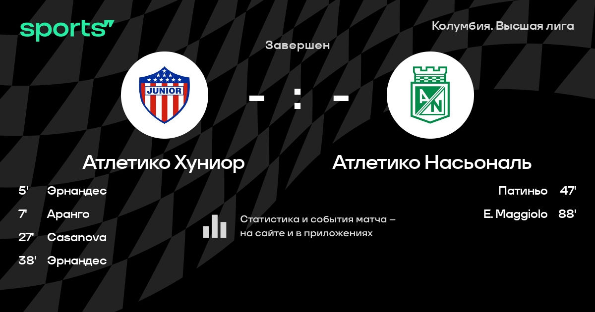 Трансляция Атлетико Хуниор - Атлетико Насьональ