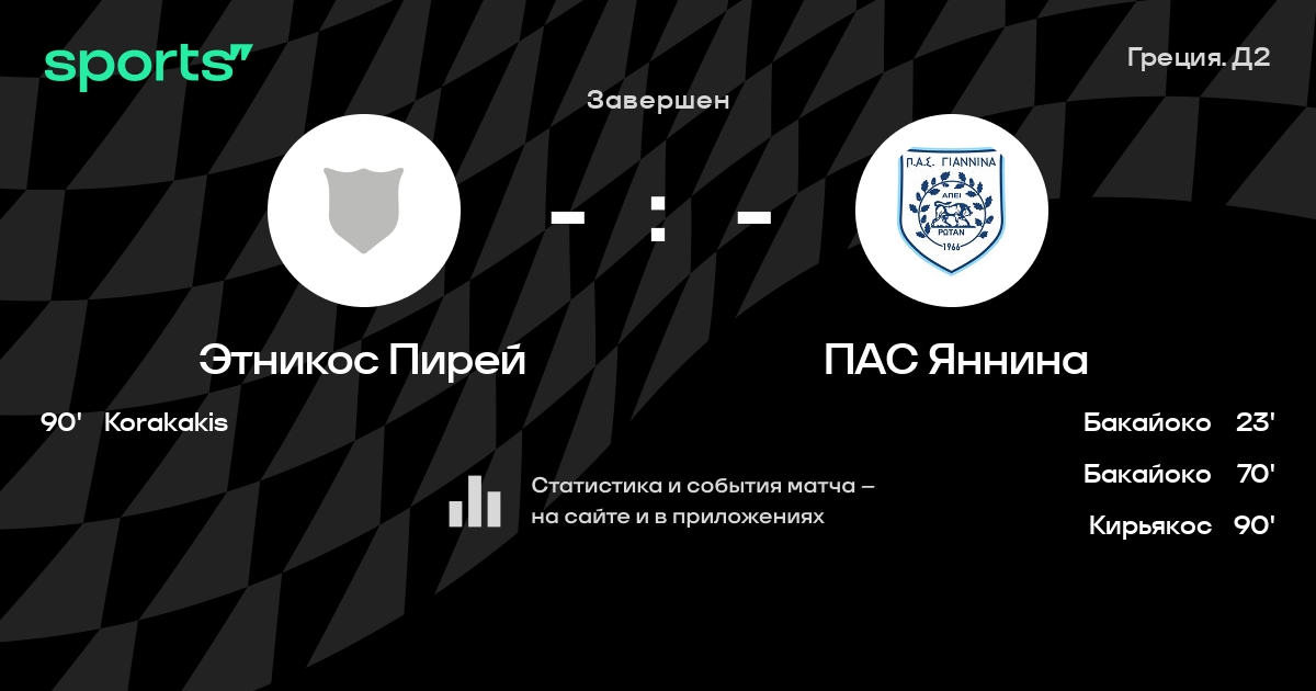 Трансляция Этникос Пирей - ПАС Яннина