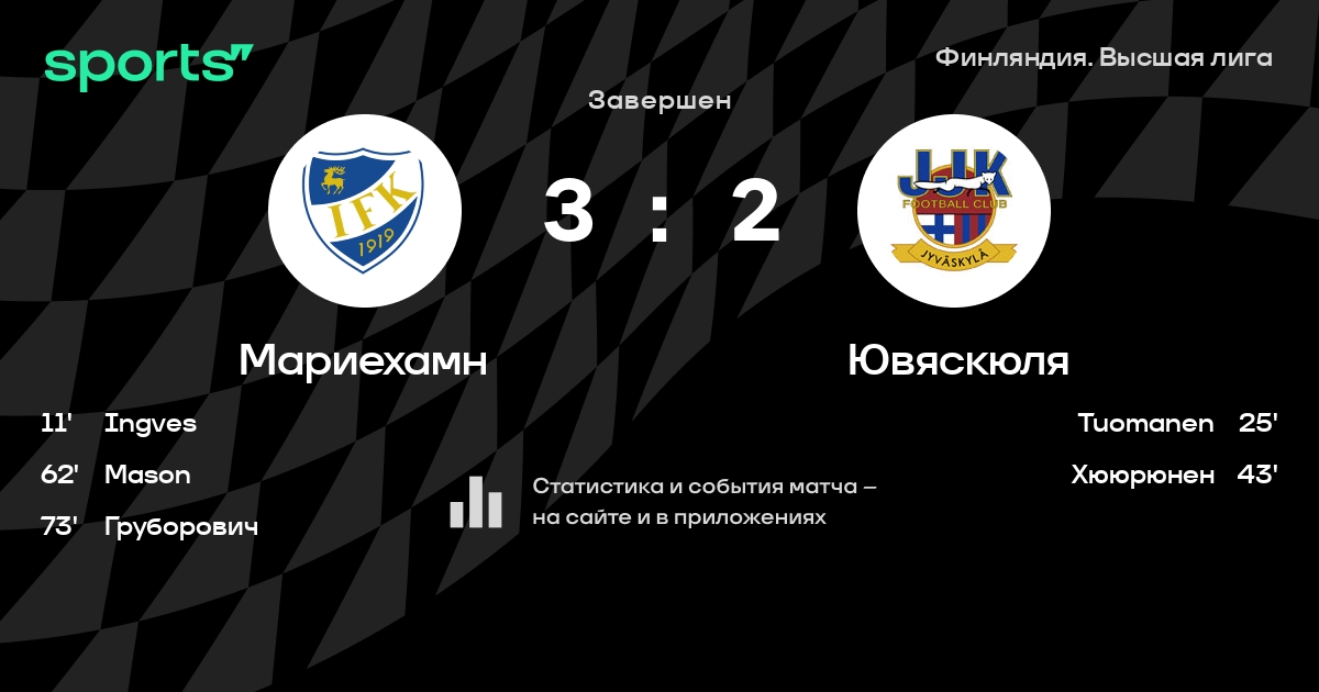 Ochieng Oganyo - Рикама-Хинненберг, Фуничелло, Dujilo, Траффорд - Груборович, Olofsson, Страннвалль, Okodugha, Carlsson - IngvesЗапасные: Лонгбакка, Houche, Gueye, Nordström, Нигл