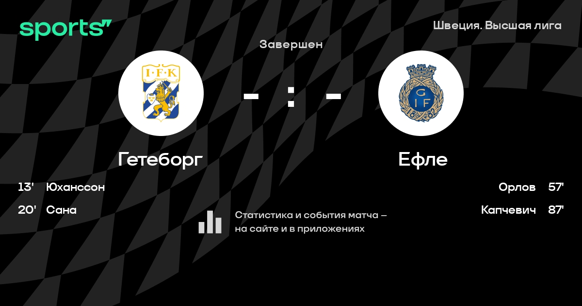 Хюгоссон - Бернхардссон, Портин, Theorin, Джаво - Ханссон, Лантто, Чибса, Фремпонг - Орлов, ДальбергЗапасные: Хедвалль, Морд, Сенаторе, Эхаген, Berggren, Капчевич, Nyström