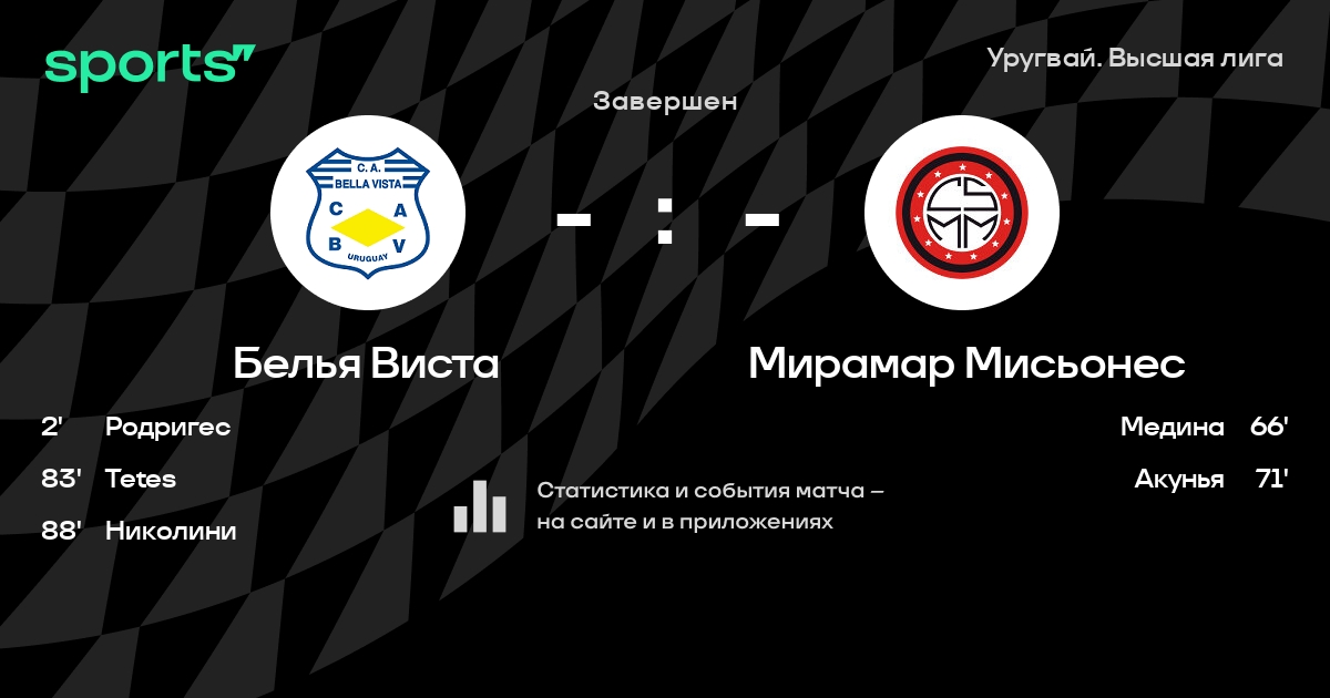 Этулаин - Aguirre Fleitas, Peralta Godoy, Rodríguez Carbajal, Bano, Виера - Скотти, Álvarez Rodríguez - Fernández Pearce, Медина, АкуньяЗапасные: Pérez Álvarez, Баран, Ríos Núñez, Леммо