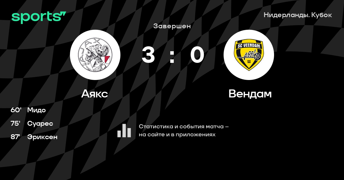 Стекеленбург - Алдервейрелд, Вертонген - Анита, Эмануэлсон, де Йонг, Сулеймани, де Зеув, Эриксен, Эно - СуаресЗапасные: Верхувен, Линдгрен, Блинд, Йозефзон