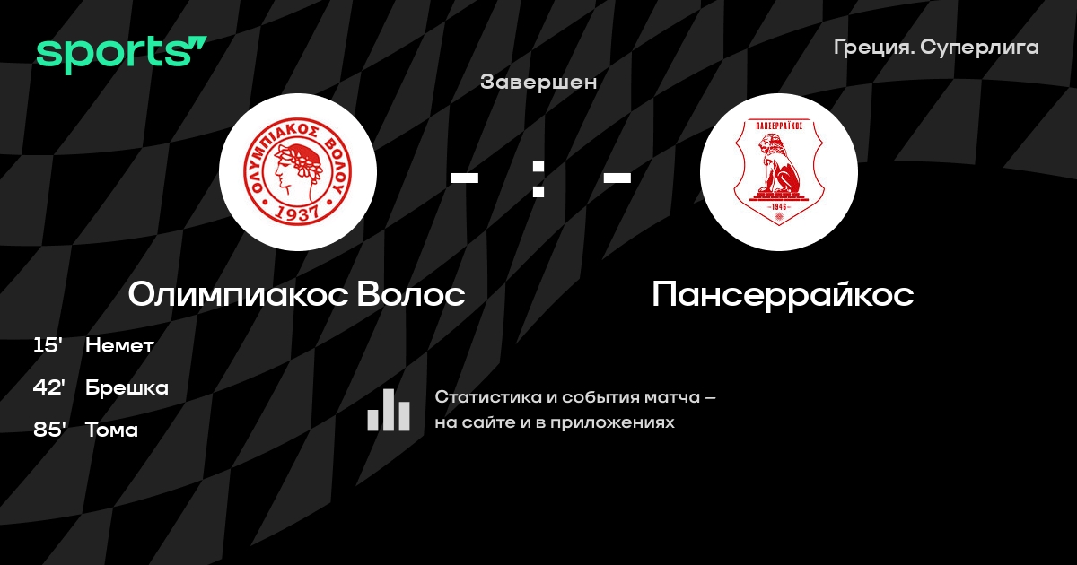 Трансляция Олимпиакос Волос - Пансеррайкос