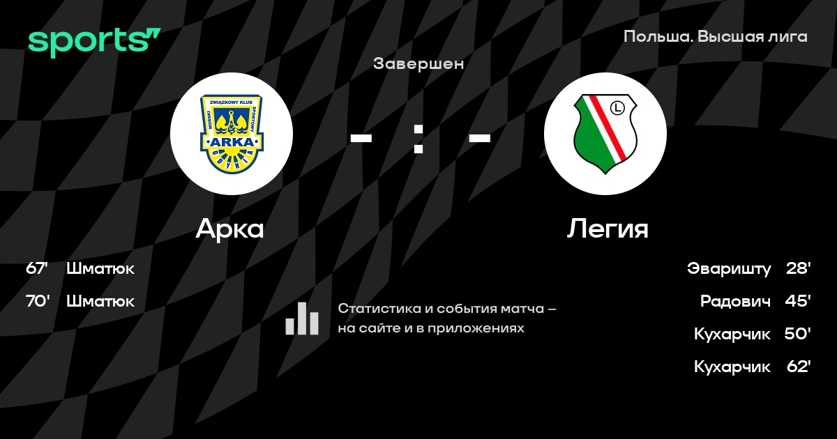 Скаба - Коморовски, Жезничак, Келбович, Чото - Врдоляк, Кабраль, Радович, Кухарчик, Голь, Эваришту - Запасные: Антолович, Енджейчик, Рыбус, Вольски, Борысюк, Шалаховски, Chinyama