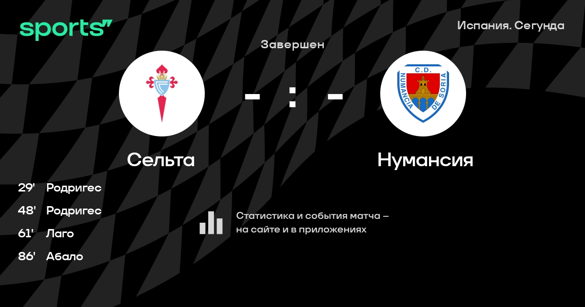 Испания. Сегунда. 23-й тур. «Сельта» разгромила «Нумансию» и другие результаты