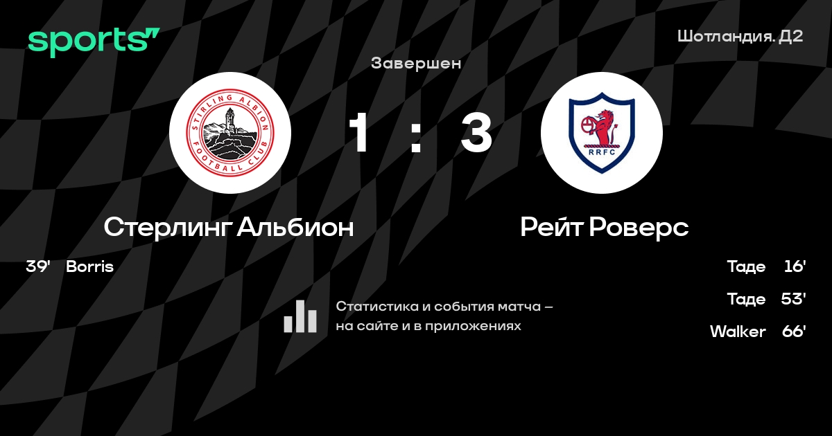 Стерлинг Альбион - Рейт Роверс: положение в турнире