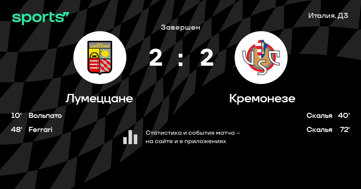 Альдегани - Кремонези, Стефани, Rizzi - Нидзетто, Sambugaro, Скалья, Витофранческо, Фьетта - Inácio, ГаспареттоЗапасные: Bianchi, Sales, Бини, Bacher, Machado Toledo, Кода, Colacone