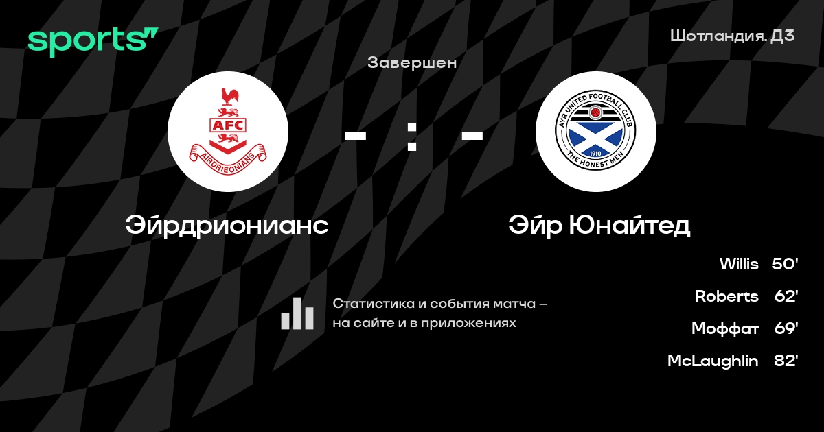 Мартин - Lauchlan, Smith, Campbell - McCann, Malone, McLaughlin, Willis - Траутен, Roberts, МоффатЗапасные: Кроуфорд, Тиффони, Бэнниган, Robertson, Rodgers
