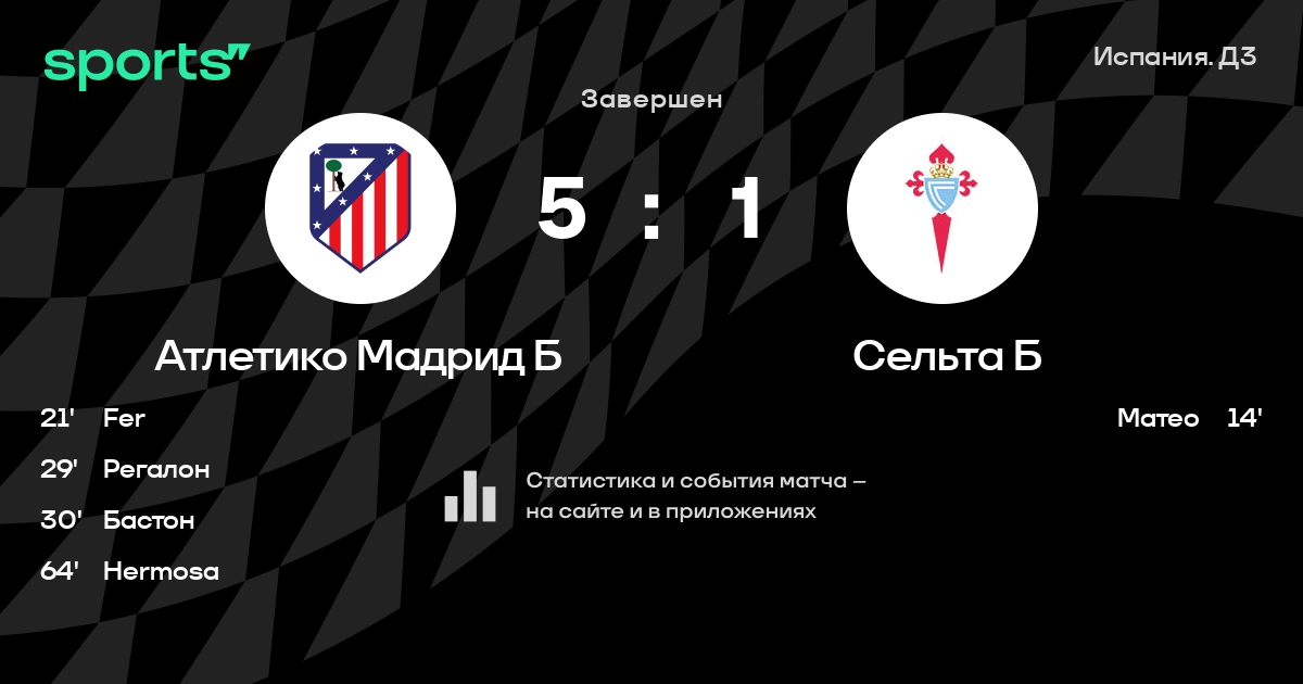 Атлетико Мадрид Б - Сельта Б: положение в турнире