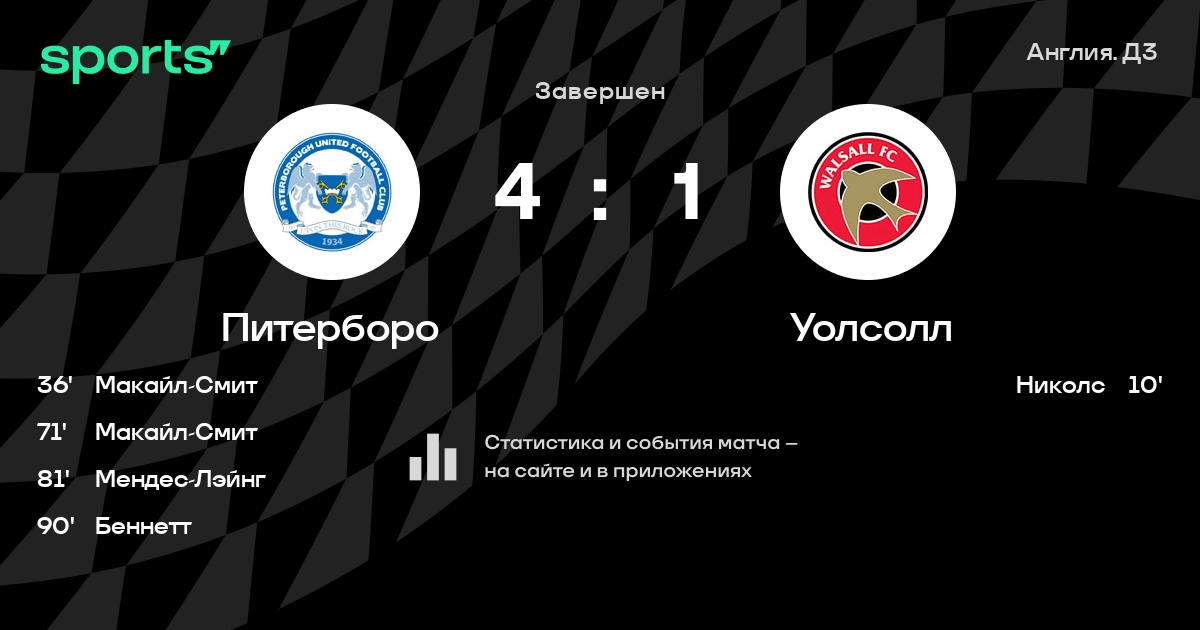 Трансляция Питерборо - Уолсолл