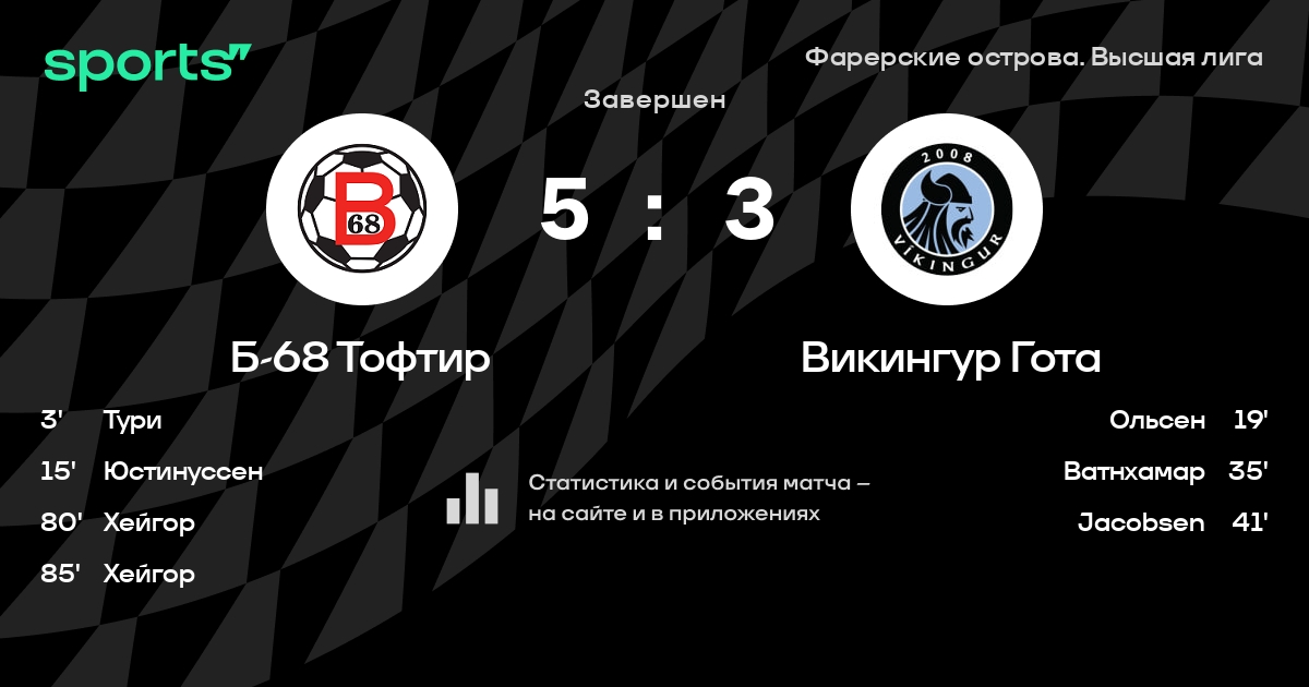 Тури - Якобсен, Хансен, Niclasen, Jacobsen, Грегерсен - Ватнхамар, Якобсен, Станкович, Ольсен - Юстинуссен