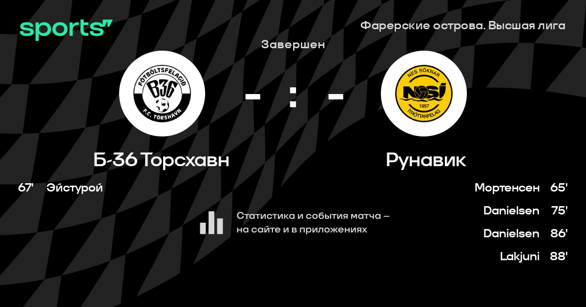 Ганго - Фредериксберг, Хансен, Давидсон, Йонсен - Петерсен, Мортенсен, Hansen - Якобсен, Ольсен, á LakjuniЗапасные: Юнсен, Даниэльсен, ой Олавсстову, Danielsen, Потемкин
