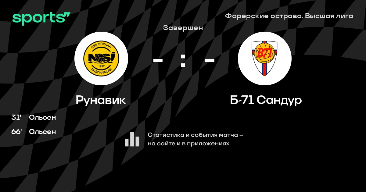 Ганго - Фредериксберг, Хансен, Давидсон, Йонсен - Петерсен, Мортенсен, Hansen - Якобсен, Ольсен, á LakjuniЗапасные: Юнсен, Даниэльсен, ой Олавсстову, Danielsen, Потемкин