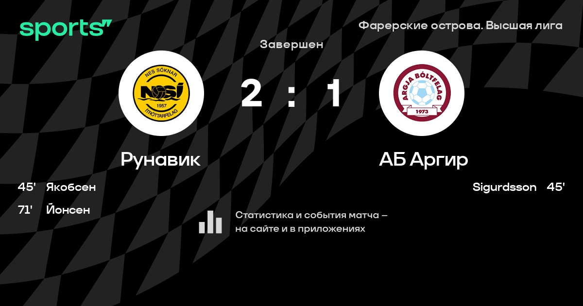 Ганго - Фредериксберг, Хансен, Давидсон, Йонсен - Петерсен, Лечин, Hansen - Якобсен, Ольсен, á LakjuniЗапасные: Юнсен, Даниэльсен, Danielsen, Фредериксберг