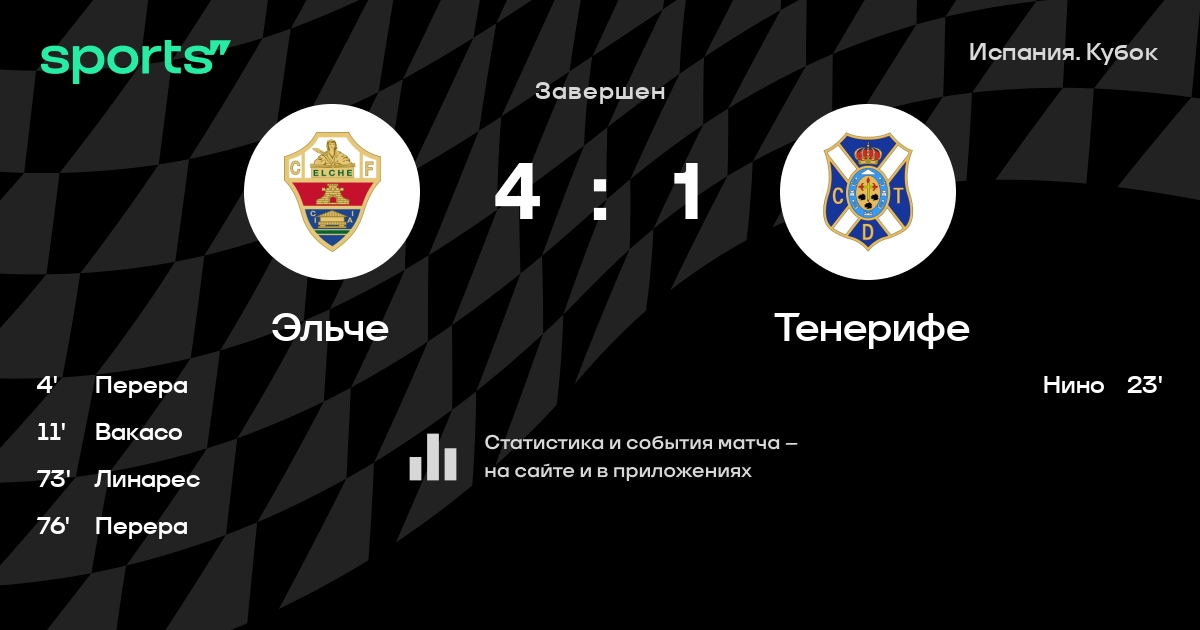 Хименес - Карпьо, Рипа, Льорка, Эчейта - Хенерело, Вакасо, Аччари, Паланка - Керо, ПерераЗапасные: , Фернандеш, Шуметра, Анхель Родригес, Линарес