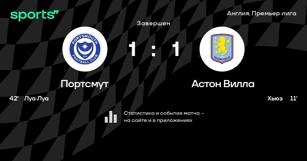Трансляция Портсмут - Астон Вилла