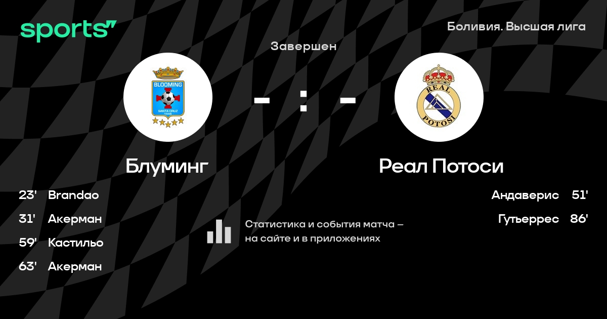 Jemio Amenabar - Альварес, Империале, Gonzáles Guzmán, Brandao Santos, Сабала - Vieira Junior, Гомес, Мохика - Кастильо, АкерманЗапасные: Рут, Villalba, González Suarez, Андия, Мальдонадо, Sillero Farías, Cababa García
