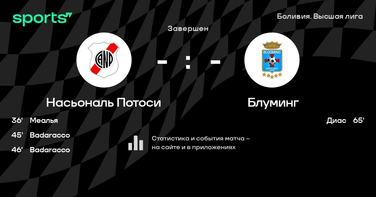 Galarza Soliz - Ортис, Сабала, Суарес, Ortiz Alonzo - Гомес, Андия, Чавес - Диас, Гутьеррес, БойероЗапасные: Cronembold Aguilera, Санчес, Наварро, Пинедо, Вердугес, Мартиньонес