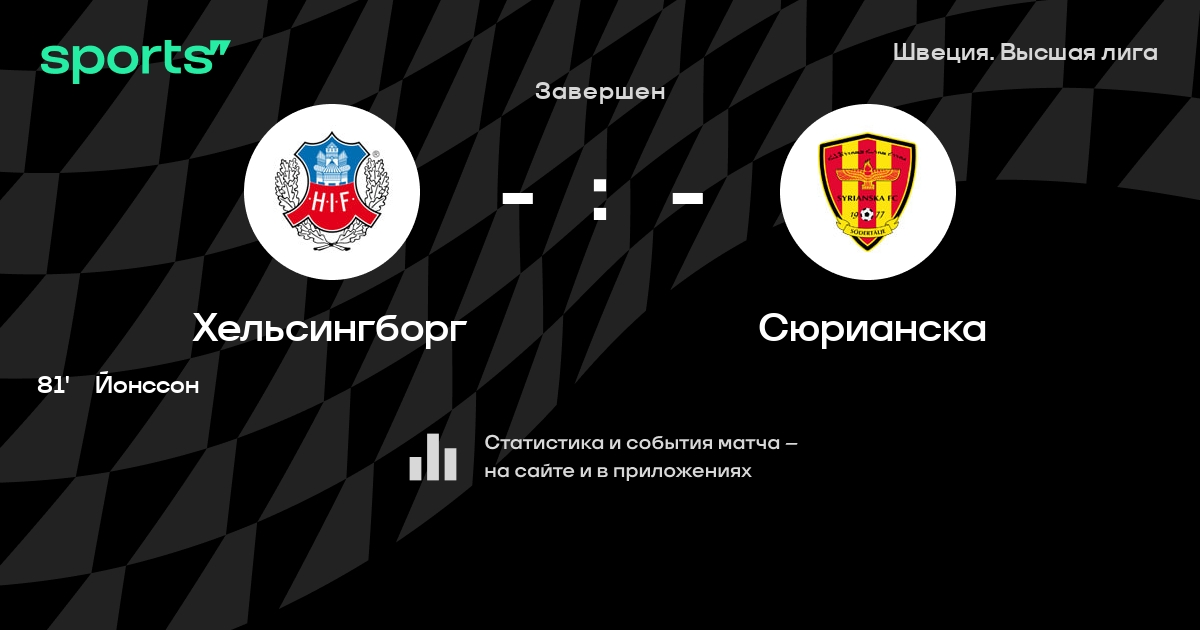 Ханссон - Хольгерссон, Ларссон, Нильссон, Вальстед - Малангу, Линдстрем, Гаши - Герндт, Йонссон, СундинЗапасные: Андерссон, Буаузан, Терн, Халили, Эйсвольд, Бергхольц