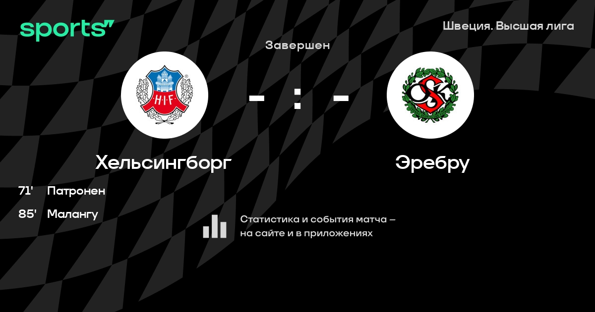 Ханссон - Хольгерссон, Патронен, Андерссон, Эдман - Малангу, Терн, Линдстрем, Гаши - Йонссон, СундинЗапасные: Андерссон, Freij, Шельвик, Вальстед, Carlsén, Рамадан