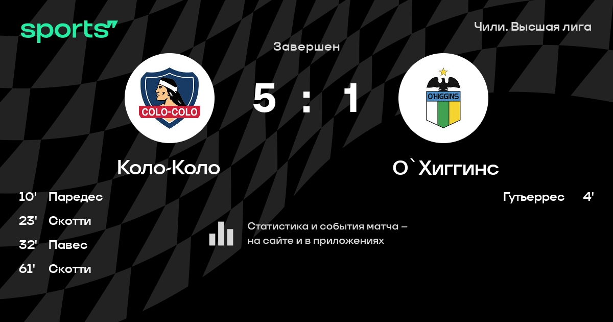| 16 | О`Хиггинс | 17 | 4 | 5 | 8 | 23 | 26 | -3 | 17 | ||