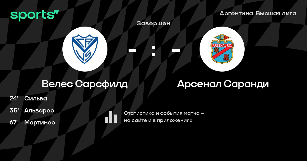 Трансляция Велес Сарсфилд - Арсенал Саранди