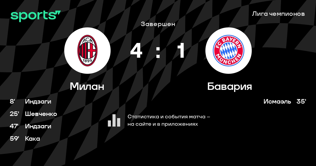 Дида - Неста, Сержиньо, Стам, Каладзе - Фогель, Зеедорф, Кака, Пирло - Шевченко, ИндзагиЗапасные: , Янкуловски, Шимич, Костакурта, Кошта, Амброзини
