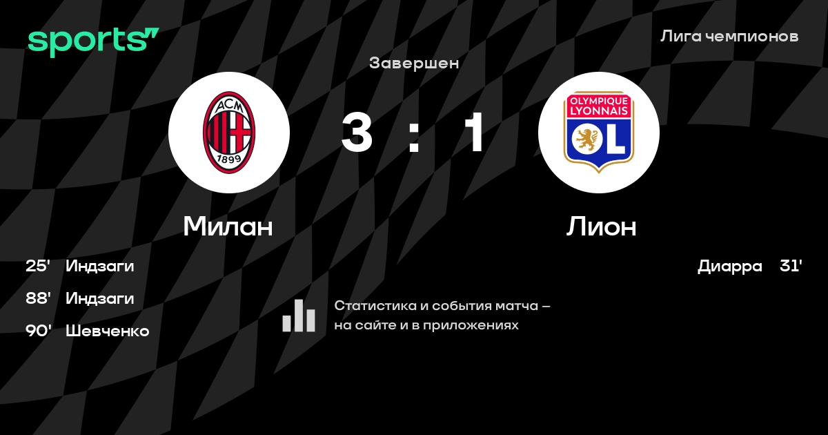 Дида - Неста, Сержиньо, Стам, Каладзе - Гаттузо, Зеедорф, Кака, Пирло - Шевченко, ИндзагиЗапасные: , Костакурта, Мальдини, Кошта, Амброзини