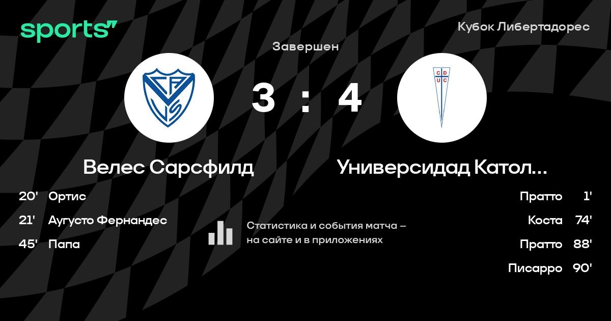 Трансляция Велес Сарсфилд - Универсидад Католика