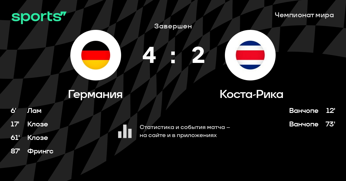 Леманн - Метцельдер, Мертесакер, Лам, Фридрих - Швайнштайгер, Шнайдер, Фрингс, Боровски - Клозе, ПодольскиЗапасные: Хильдебранд, Кан, Новотны, Янсен, Хут, Одонкор, Кель, Хитцльспергер, Баллак, Ханке, Асамоа