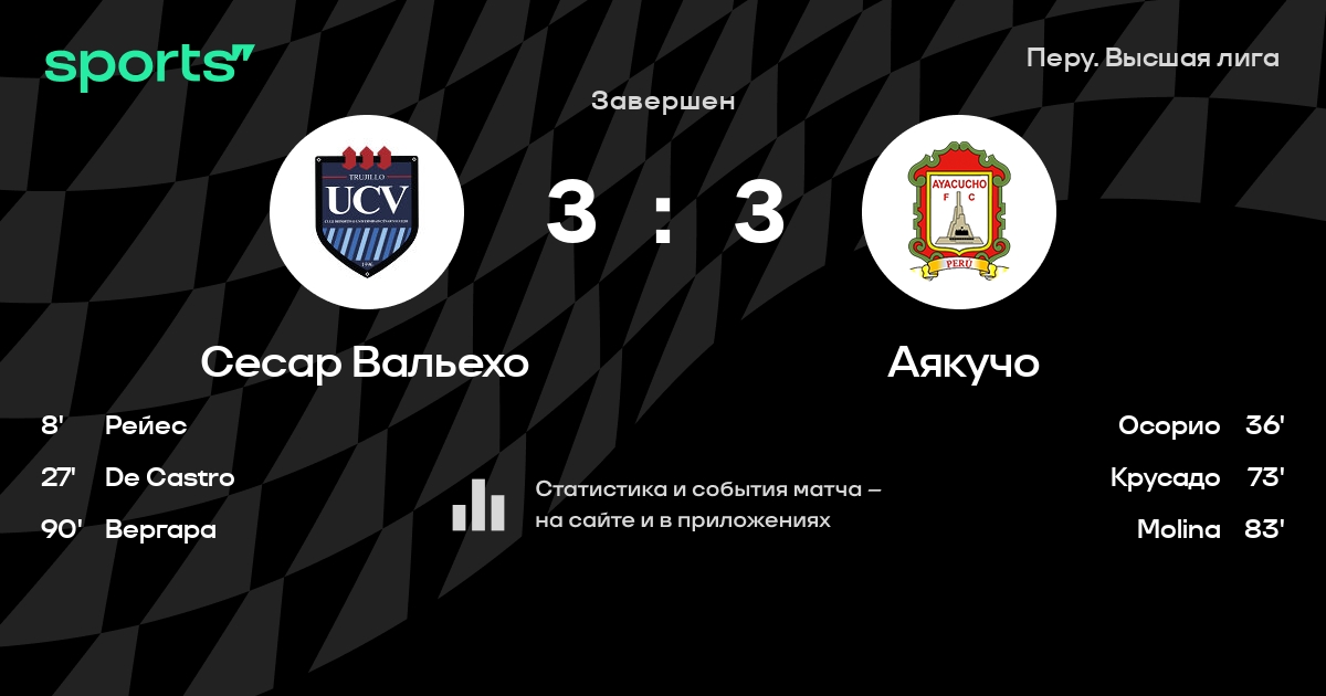 Феррейра - Угас, De Castro Storace, Муэнте, Рейес - Linares Lázaro, Iriarte Cardenas, Файффер, Легисамон - Рекальде, Demus MetzЗапасные: Эрмоса, Carbajal Callirgos, Рекена, Андонайре, Накайя, Вергара, Carranza Alvites