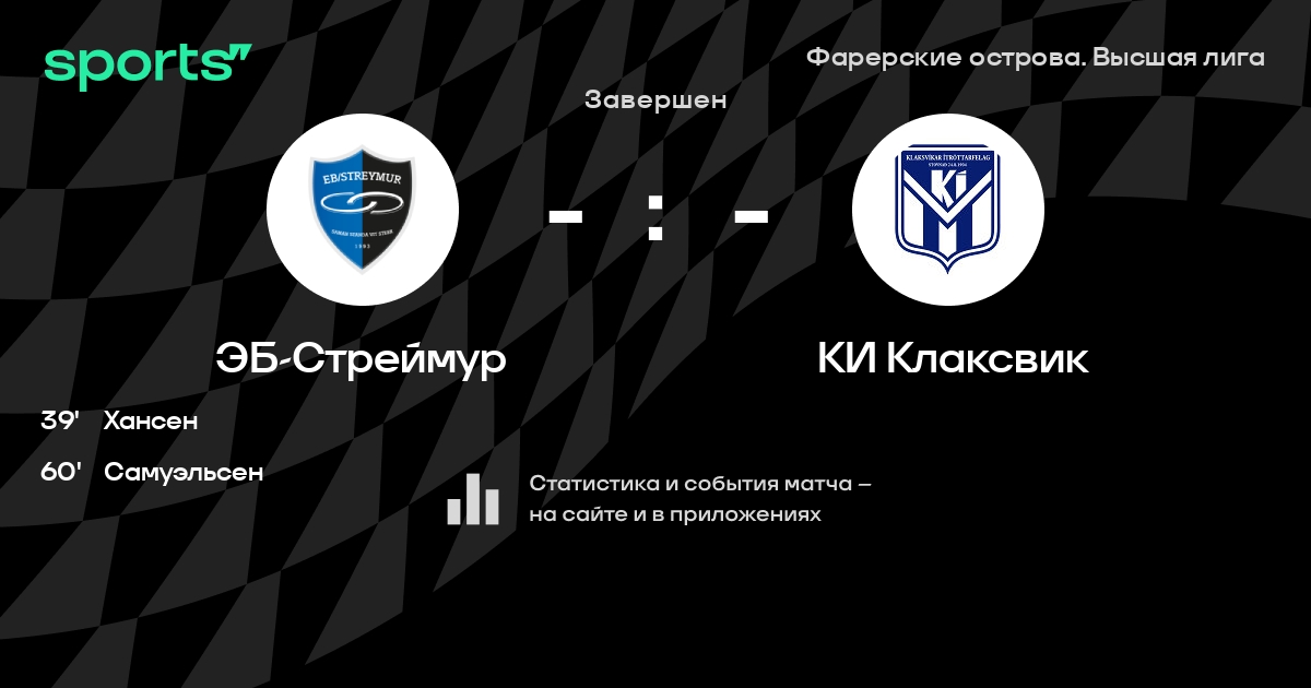 о Стейг - Isaksen, á Lakjuni, Eliasen, Симонсен - Станкович, Якобсен, Christiansen, Мадсен - Джорджевич, ЭльттерЗапасные: , Hammer, Joensen, Даниэльсен, Vágstún, Хайнесен