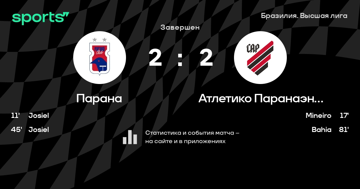 | 12 | Атлетико Паранаэнсе | 38 | 14 | 12 | 12 | 51 | 50 | +1 | 54 | ||