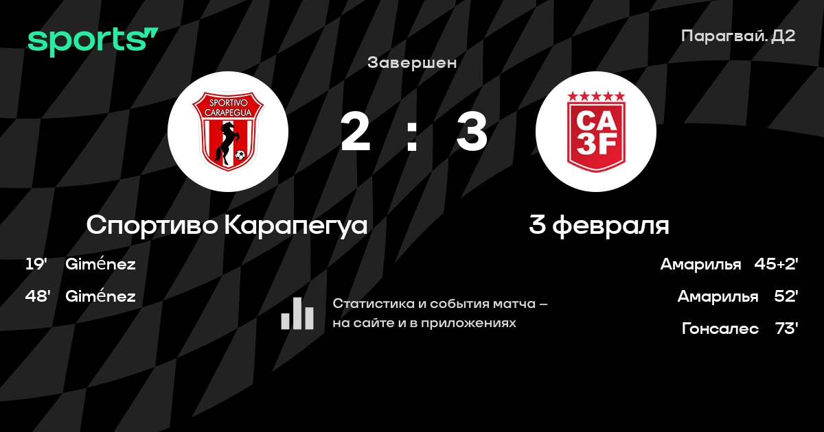 Спортиво Карапегуа - 3 февраля: положение в турнире