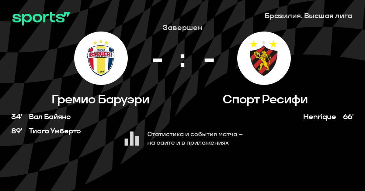Трансляция Гремио Баруэри - Спорт Ресифи