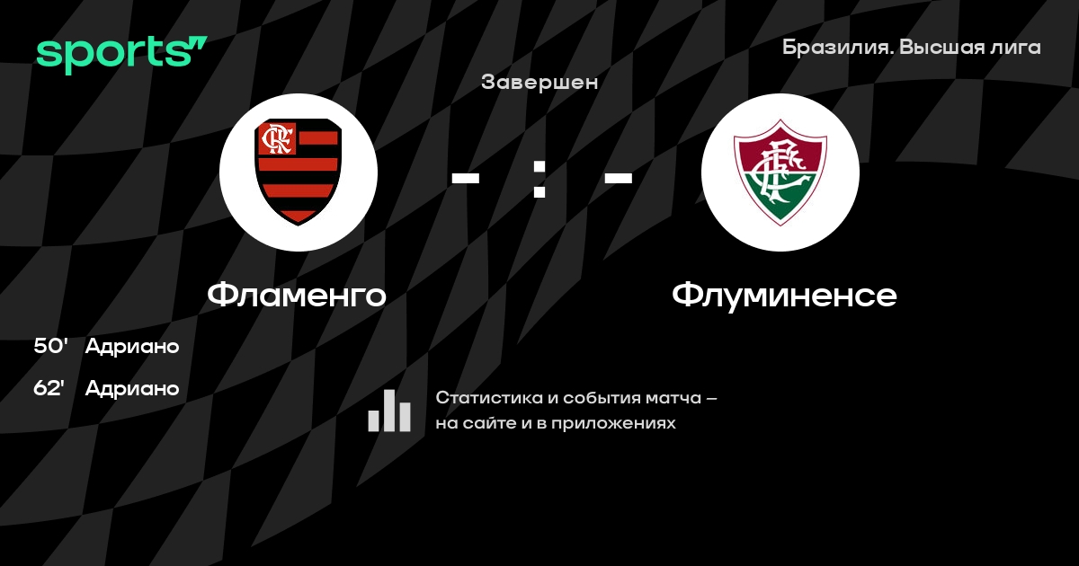 Чемпионат Бразилии. 22-й тур. «Фламенго» обыграл «Санту-Андре», «Сантос» – «Флуминенсе», «Интернасьонал» разгромил «Гойас»