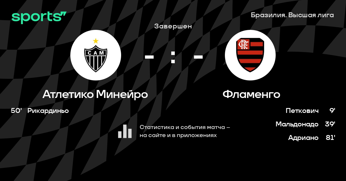 Чемпионат Бразилии. 18-й тур. Гол Адриано принес победу «Фламенго», «Палмейрас» сыграл вничью с «Атлетико Минейро»