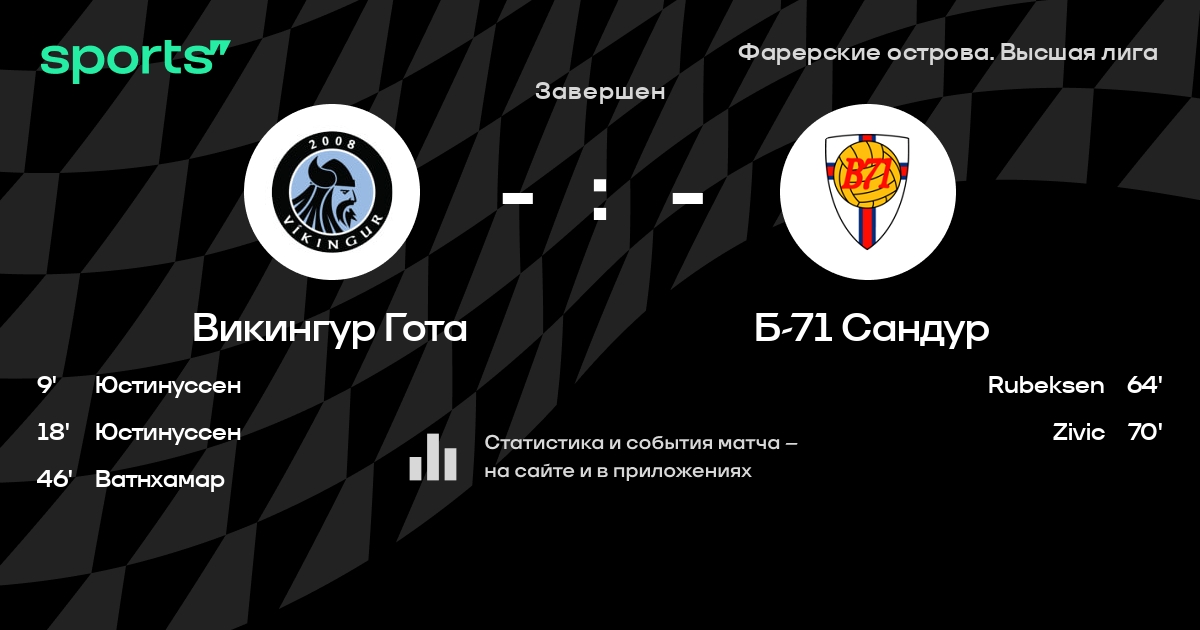Тури - Якобсен, Якобсен, Niclasen, Грегерсен - Ватнхамар, Якобсен, Хансен, Blé - Юстинуссен, ХансенЗапасные: Ryggshamar, Dalbø, Poulsen, Соренсен, уй Бартальсстову
