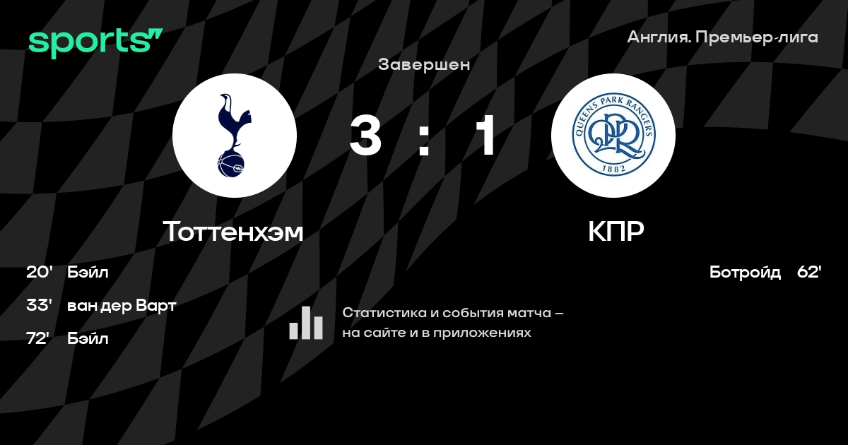 Фридель - Ассу-Экотто, Уокер, Кинг, Кабуль - Леннон, Модрич, ван дер Варт, Паркер - Бэйл, АдебайорЗапасные: Кудичини, Бассонг, Галлас, Сандро, Ливермор, Дефо
