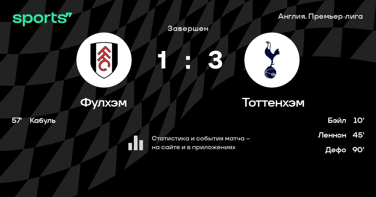 Фридель - Ассу-Экотто, Уокер, Кинг, Кабуль - Леннон, Модрич, ван дер Варт, Паркер - Бэйл, АдебайорЗапасные: Кудичини, Бассонг, Сандро, Пиенар, Ливермор, Дефо
