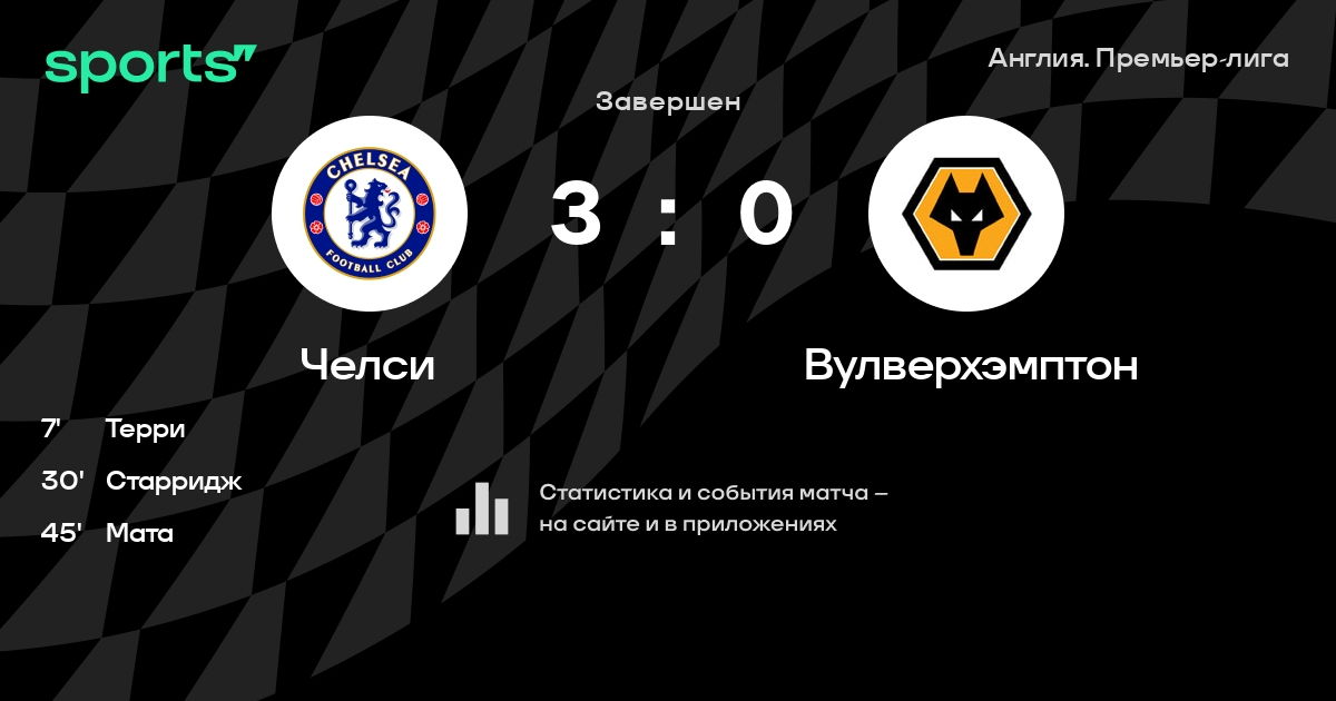 Чех - Терри, Коул, Иванович, Давид Луиз - Рамирес, Ромеу, Мата, Мейрелеш - Старридж, ДрогбаЗапасные: Тернбулл, Босингва, Малуда, Оби Микел, Калу