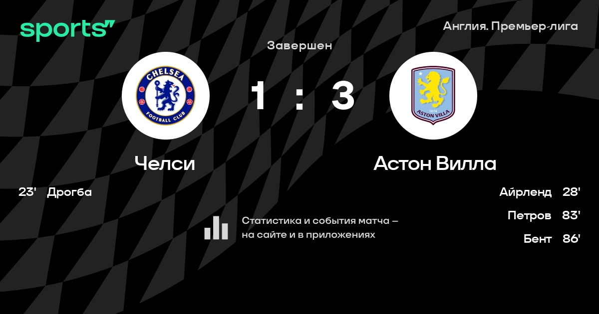 Чех - Терри, Коул, Феррейра, Давид Луиз - Рамирес, Ромеу, Мата, Мейрелеш - Старридж, ДрогбаЗапасные: Тернбулл, Босингва, Хатчинсон, Малуда, Калу