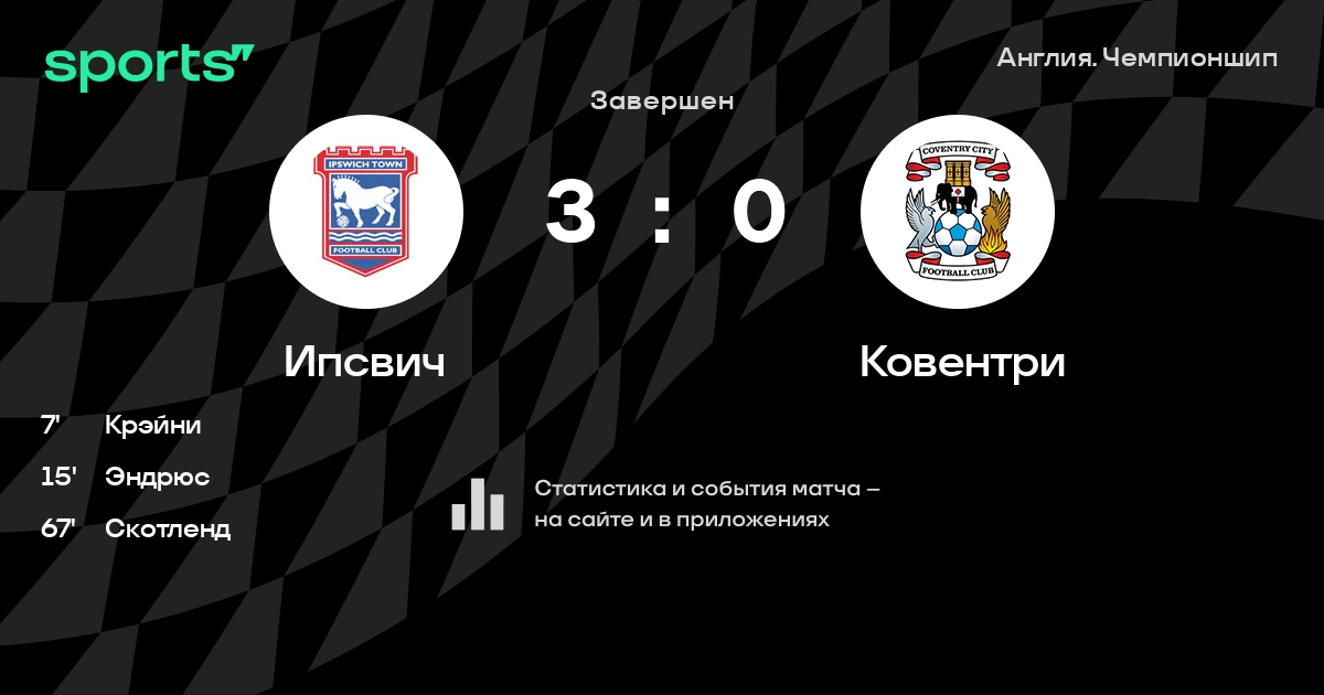 Англия. Чемпионшип. 7-й тур. «Ипсвич» разгромил «Ковентри» и другие результаты