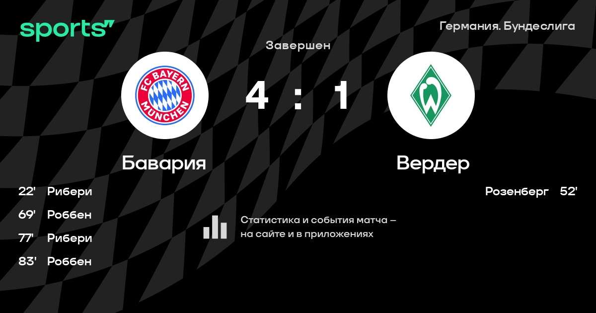 Нойер - Дж. Боатенг, Лам, Алаба, ван Бейтен, Бадштубер - Луис Густаво, Кроос, Рибери - Мюллер, ГомесЗапасные: Бутт, Рафинья, Контенто, Роббен, Петерсен